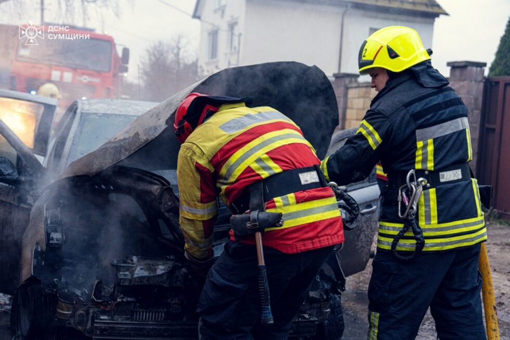 Авто спалахнуло просто на ходу: у Сумах рятувальники ледь встигли зупинити вогонь (ВІДЕО)